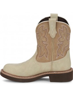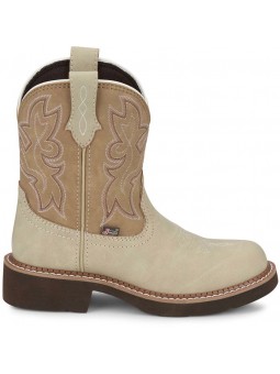 Der Justin Kay 8″ Damen Westernstiefel aus taupe-farbenem Rindsleder mit naturbeigem Schaft aus der Justin Gypsy™ Serie kombiniert robusten Stil mit femininer Note. Das lebendige Ziernahtmuster und der Round Toe verleihen ihm echten Westerncharakter – ob auf dem Reitplatz oder in der Stadt. Das kompakte Gypsy™-Profil mit kürzerem Schaft und breitem Absatz sorgt für Komfort und Bewegungsfreiheit den ganzen Tag.