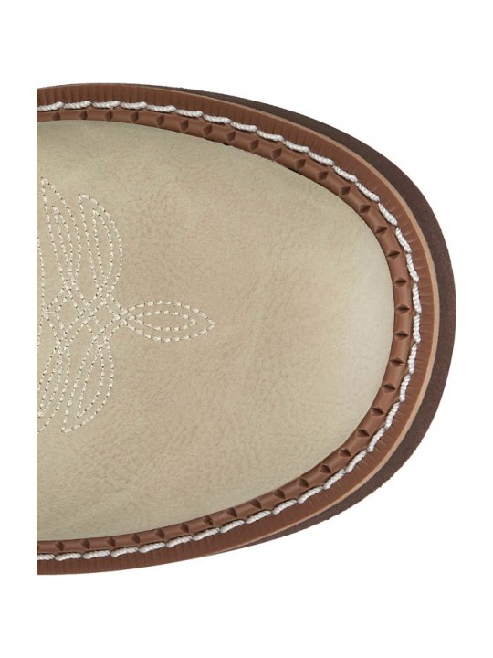 8″ Damen-Westernstiefel aus taupe-farbenem Rindsleder mit naturbeigem Schaft, Ziernähten, Round Toe & J‑Flex Sohle.