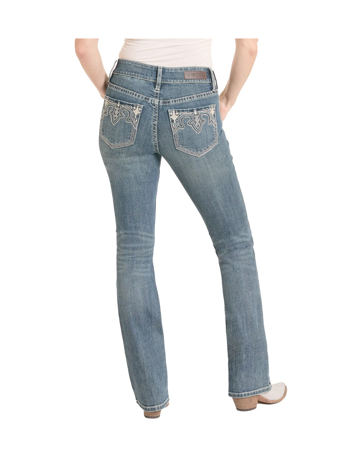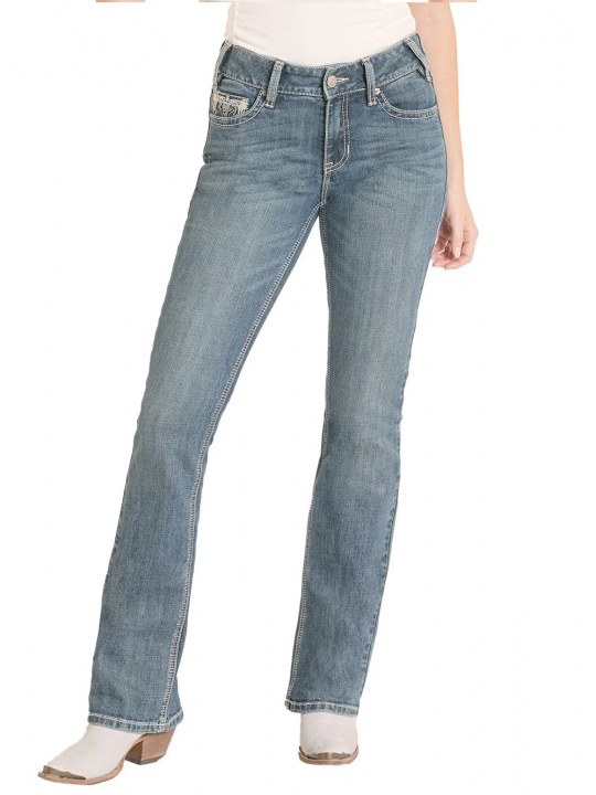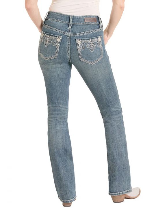 These medium wash Mid Rise Raised Embroidered Pocket Bootcut Jeans are a classic wardrobe essential. The regular fit offers comfort, while the 98% cotton and 2% spandex blend ensures extra stretch for a perfect fit. Featuring a zip fly closure, these jeans are designed for both style and practicality.