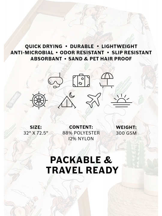 Bring Funktion und Stil in jedes Abenteuer mit unserem Desert Cowboy Mikrofaserhandtuch. Es besteht aus leichtem, schnelltrocknendem Material und ist aus einer Mischung von 88 % Polyester und 12 % Nylon gefertigt, wodurch es besonders saugfähig und antimikrobiell ist. Der perfekte Begleiter zum Mitnehmen für jede Aktivität.
