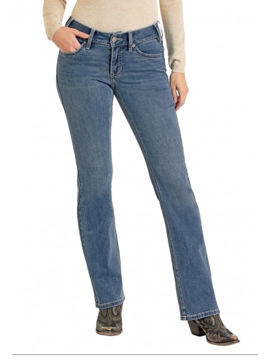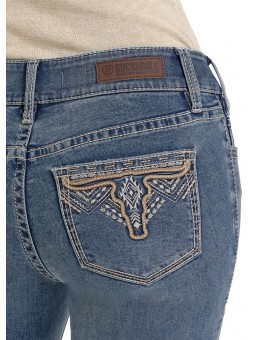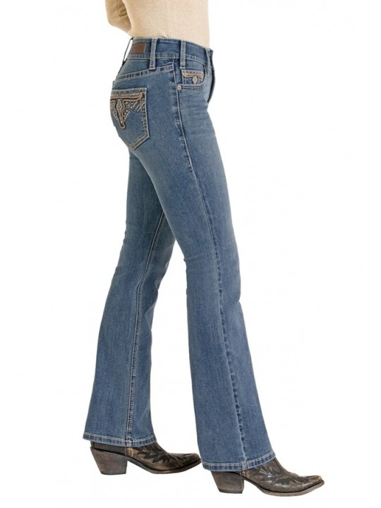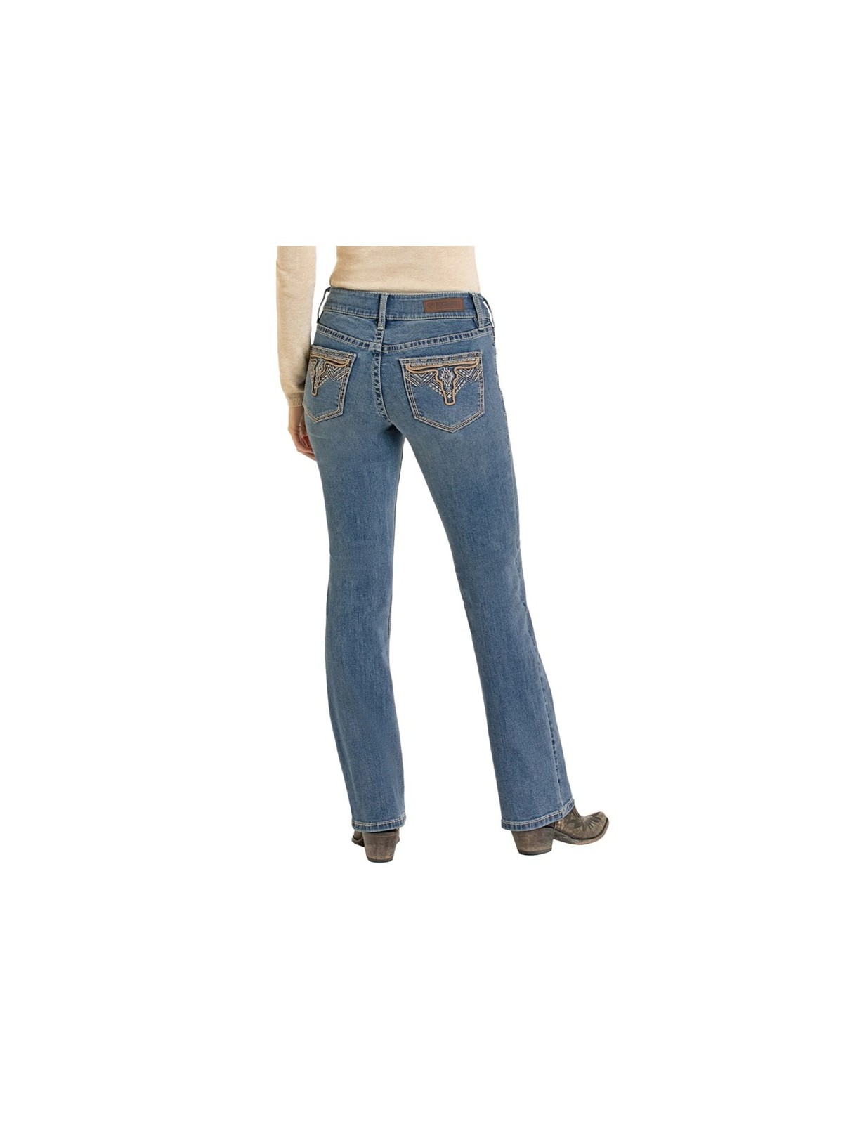 These medium wash Mid Rise Steer Head Embroidered Bootcut Jeans are a classic wardrobe essential. The regular fit offers comfort, while the 92.5% cotton, 6% polyester, and 1.5% spandex blend ensures extra stretch for a perfect fit. Featuring a zip fly closure, these jeans are designed for both style and practicality.