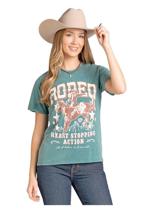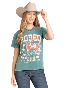 Rock and Roll women's printed oversized tee with a 'Rodeo' graphic design across the front.