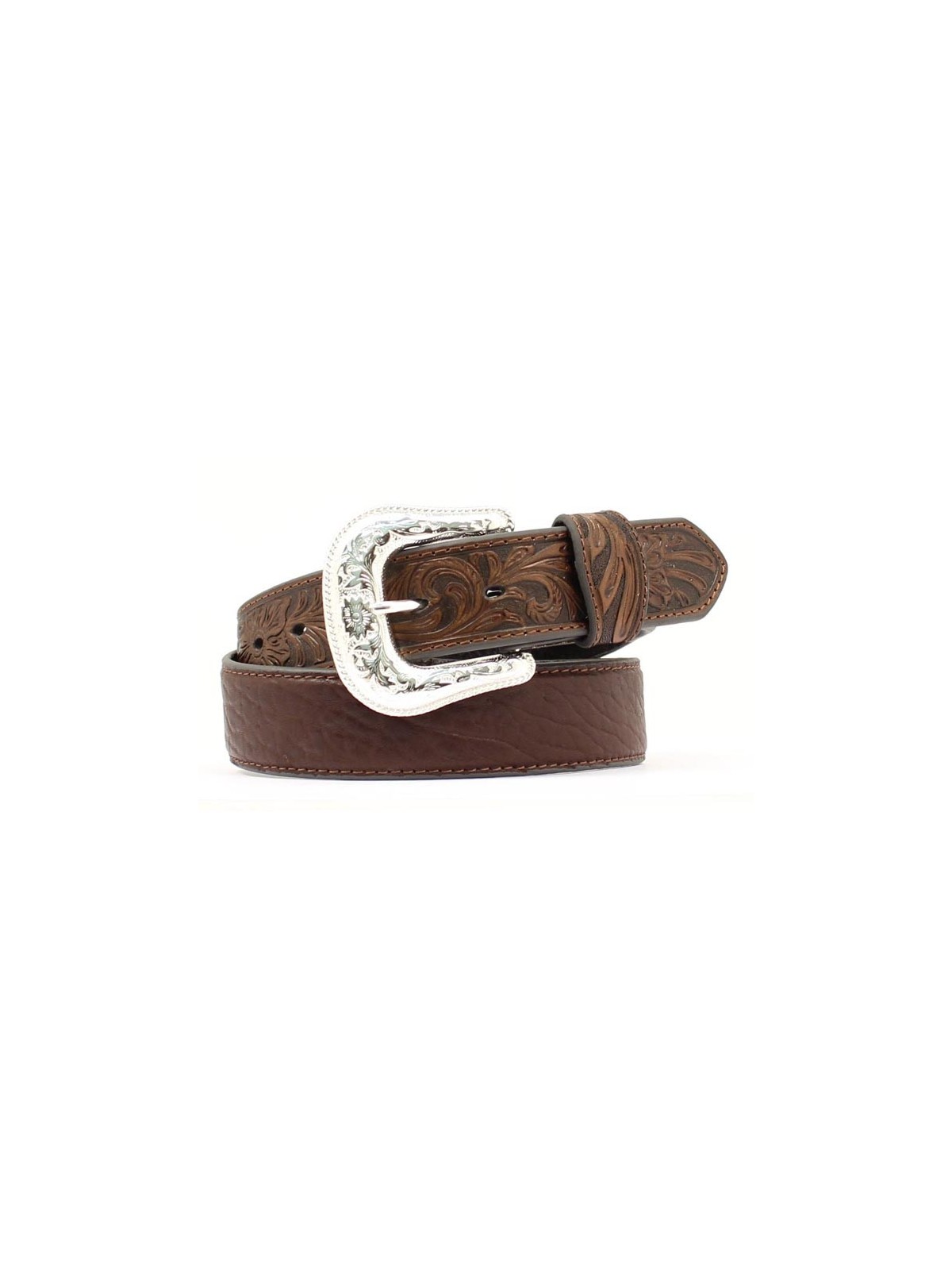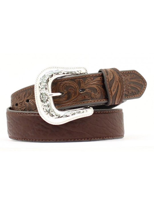 Enjoy style and durability from this Nocona belt. It measures 1-1/2” wide, with a brown floral tooling accent. Interchangeable silver buckle. Great western look for your horse riding wardrobe.