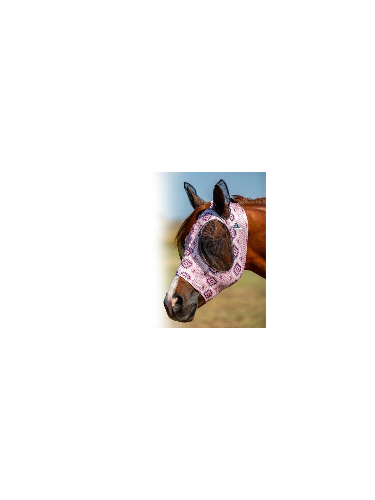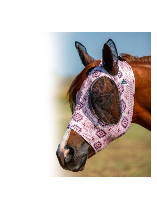 Comfortable fly mask with fun "Clay" print, soft fleece edges, and mesh ears – ideal for daily turnout and maximum fly protection.