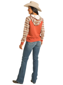 The Panhandle Slim Women's Hoodie Contrast Sleeves Rust combines comfort and western flair. With a rust body, contrasting sleeves, and a soft cotton‑poly blend, it’s perfect for layering on cool days.