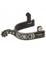 Men's spurs accented with an arrow crossing design with German silver accents.