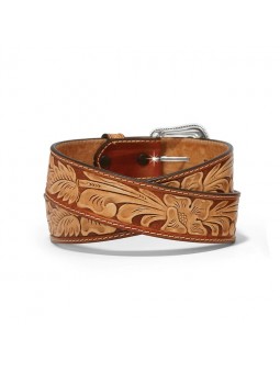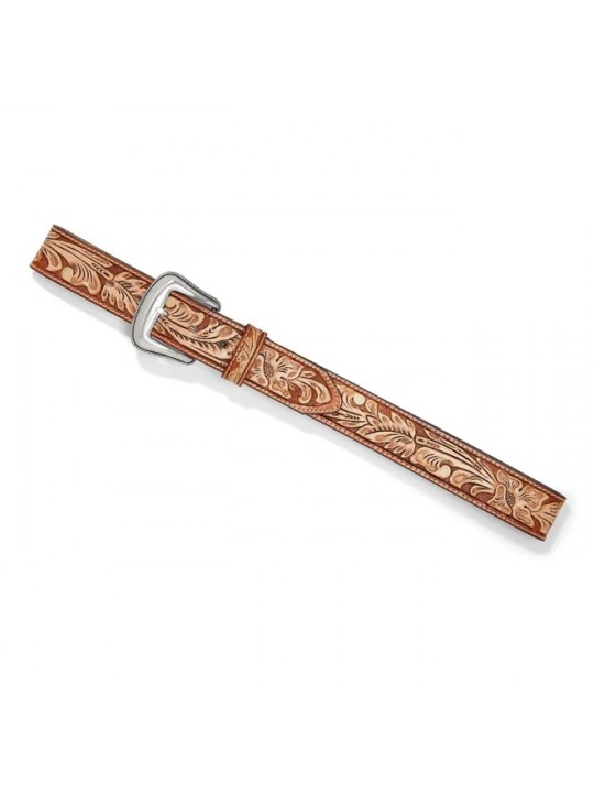 Inspired by beautifully crafted horse saddles, a two-tone natural vegetable tanned embossed floral pattern distinguishes this Justin belt design with a smooth genuine silver-plated buckle. Made in the USA.
