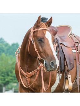 - Elevated style with Weaver Leather exclusive buffed brown hardware featuring a German silver flower and vine design with copper dots