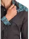 Showcase your Western style with the Slim Fit Turquoise Paisley Yoke Long Sleeve Snap Shirt Featuring a unique paisley yoke design, this shirt is made from 97% and 3% spandex for a comfortable, flexible fit. The snap closures and long sleeves add functionality, while the double chest pockets provide extra storage. Ideal for making a statement on any casual occasion.