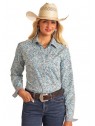 This turquoise Long Sleeve Snap-Down Paisley Floral Shirt by Panhandle Slim combines classic Western style with modern comfort. It features a snap-down front, snap cuffs, and two front snap pockets. Princess seams provide a flattering fit, while contrasting patterns under the cuffs add a unique touch.