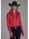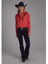 Women's Fabulous Western Shirt In Red Soft Rayon Challis