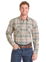 Taupe Plaid Long Sleeve Snap Front Shirt.