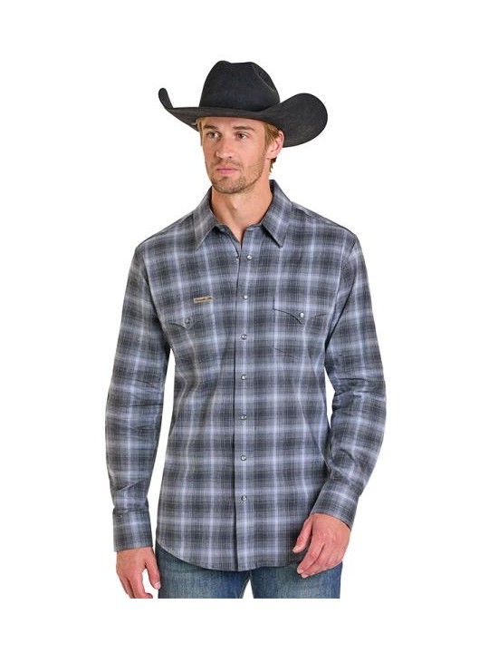 Plaid Western shirt made from brushed cotton in the color charcoal.
